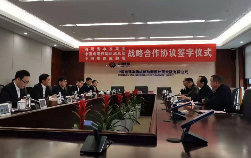 2月6日,集團與中國電力建設集團有限公司西部區域總部(簡稱中電建西區總部)、中國電建集團成都勘測設計研究院有限公司(簡稱成勘院)在成都簽署戰略合作協議。集團黨委書記、董事長鐘杰,中電建黨委委員、總經理助理兼市場經營部主任、西區總部總經理、西部建投公司董事長張建文,成勘院黨委書記、董事長黃河等出席簽約儀式。