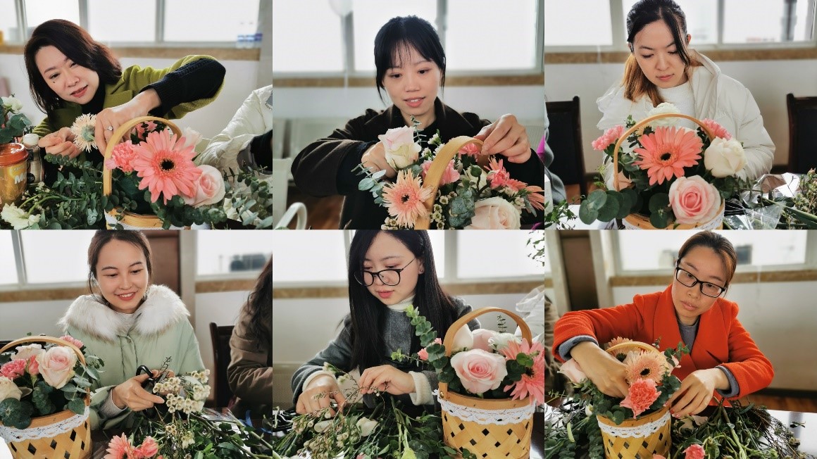 活動開始前,黨委書記、董事長王剛強向公司全體女職工送上了節日的祝福并對她們的工作和生活寄予了殷切的期望。值此良節,人力資源部蘇春、設計一分院王靜、造價中心李泠歐、工程建設分公司尚俊杰、辦公室肖婷婷,五位女職工代表結合自身的工作經歷,以女性的視角分享了女性對于工作、家庭、生活的感悟及平衡。在條件艱苦的施工勘察現場,她們沒有退縮;在專業技術能力上,她們不斷提高;在家庭生活上,她們理解包容。插花藝術活動中,公司48名女職工代表在專業插花老師的帶領下進行花卉的制作。