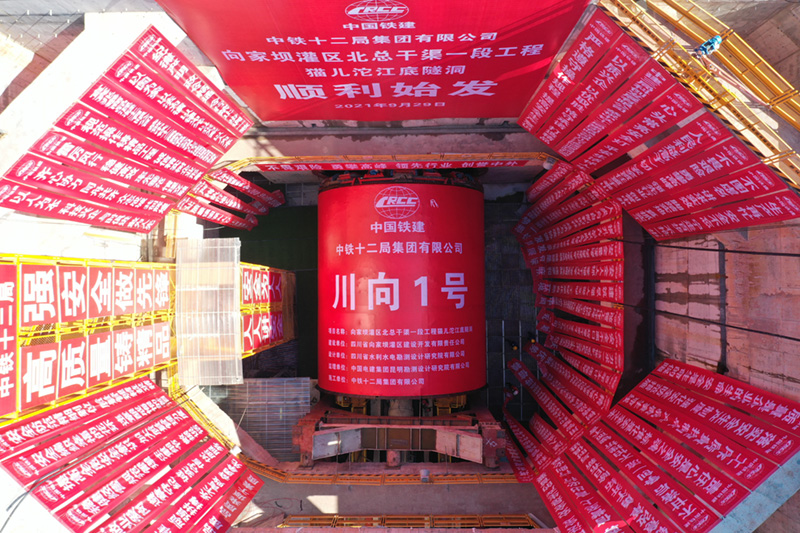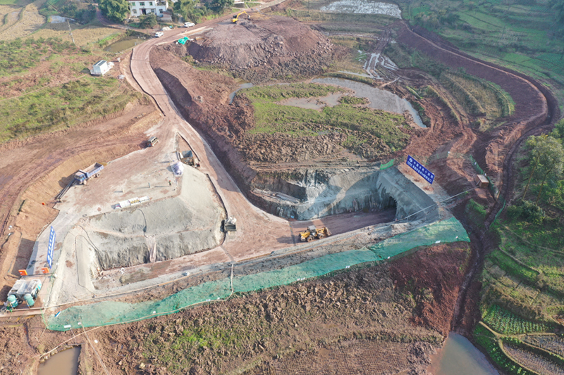工作人員正在向家壩灌區北總干渠一期工程龍洞巖隧洞工程內檢查電纜