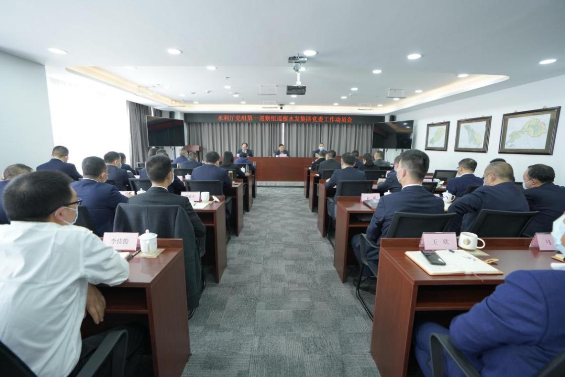 水利廳黨組第一巡察組全體干部,巡察辦負(fù)責(zé)同志,水發(fā)集團(tuán)領(lǐng)導(dǎo)班子、中層干部及民主黨派代表參加會議。