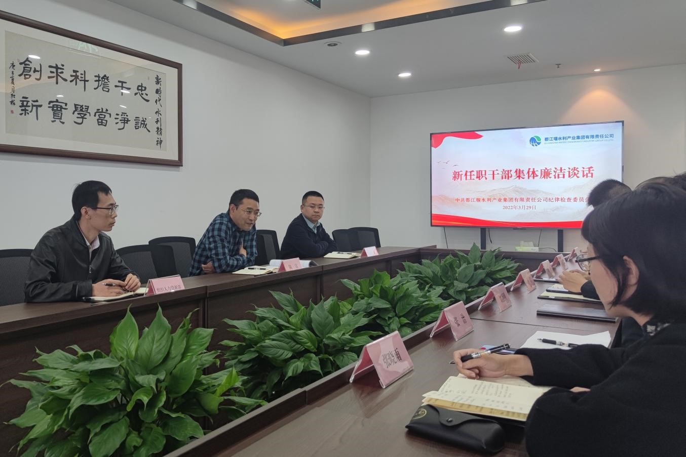 2022年3月29日,產(chǎn)業(yè)公司組織召開新任職干部集體廉潔談話會,公司黨委專職副書記、紀(jì)委書記陳雷主持會議并講話,紀(jì)檢監(jiān)察部、組織人力資源部和近期新調(diào)整、任職的7名中層干部參加會議。