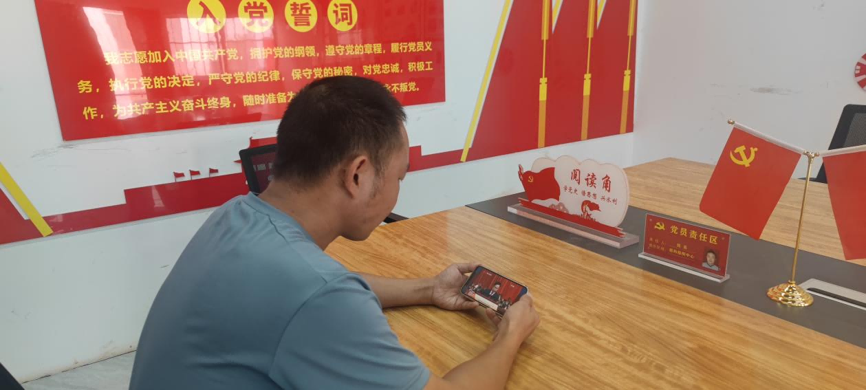在向家壩灌區貓兒沱臨時黨支部黨員活動室,黨員們為報告中多次描述四川水利建設感到鼓舞,表示將進一步運用好科技元素,確保過江隧洞安全順利施工。