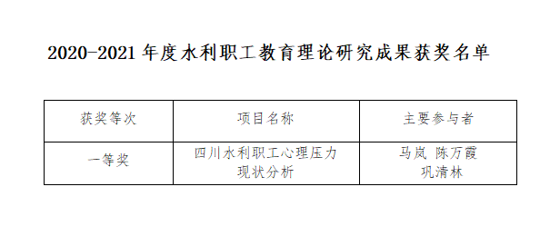10月26日,中國水利教育協會在官網發布了第二屆水利職工創新成果評選結果和2020-2021年度全國水利職工教育理論研究成果評選結果的公告,集團多名職工在評選中獲獎。