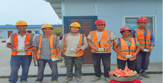 圖:建設公司在虎渡溪項目部開展“夏送清涼”活動