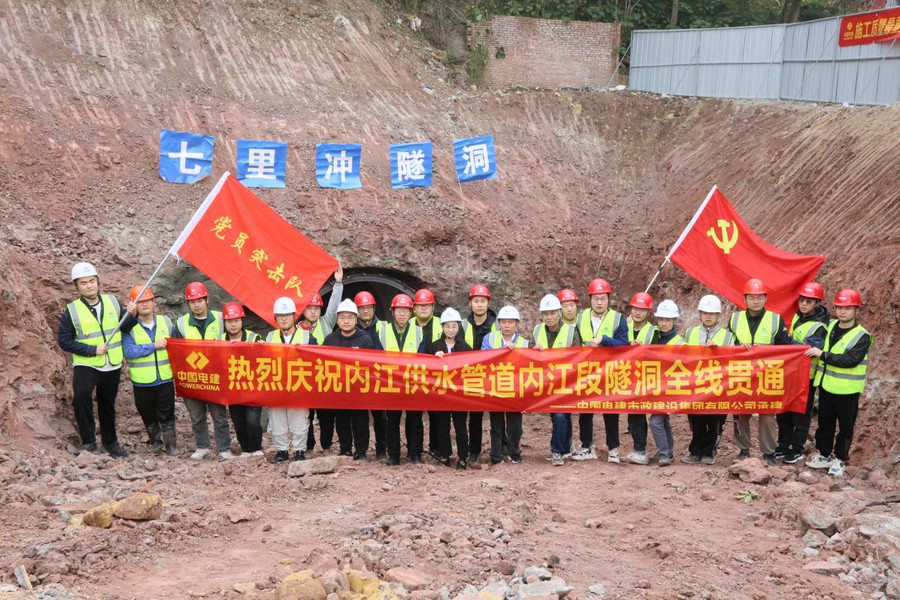 11月23日,隨著七里沖隧洞洞中掘進機破巖而出,標志著向家壩灌區北總干渠一期一步工程內江供水管道內江段全線7千米,8條隧洞已全部貫通,內江供水管道內江段全面進入二次襯砌。