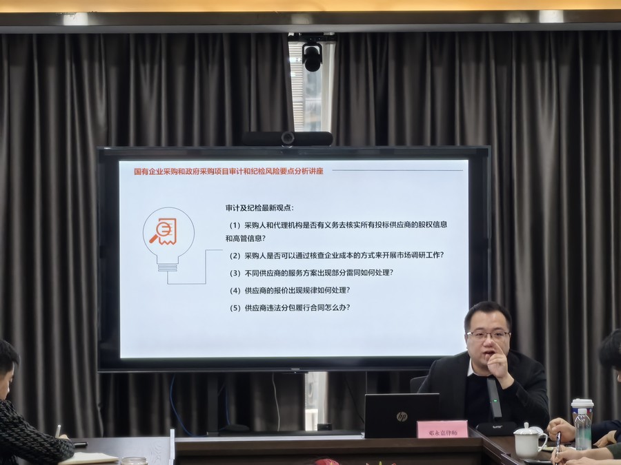 投資公司舉辦“國有企業采購工作常見法律風險分析及案例講解”法律講座