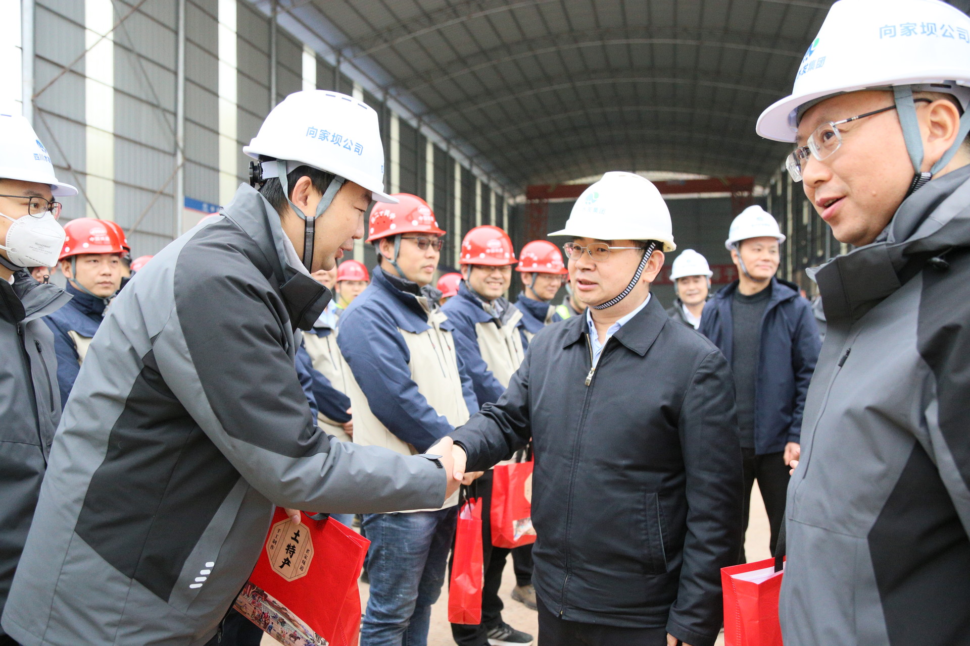 寒冬雖冷,歲寒情深。在集團黨委的統籌部署下,集團工會啟動“冬送溫暖”活動,在2024年元旦春節期間開展一線職工慰問。1月6日至7日,集團黨委書記、董事長王華率集團黨委委員、總工程師隆文非及集團黨委委員、工會主席唐克飛一行,先后到向家壩灌區一期一步工程大地灣渡槽和亭子口灌區一期工程唐家溝渡槽施工現場,慰問艱苦奮戰在一線的的干部職工,為他們送上新年祝福。