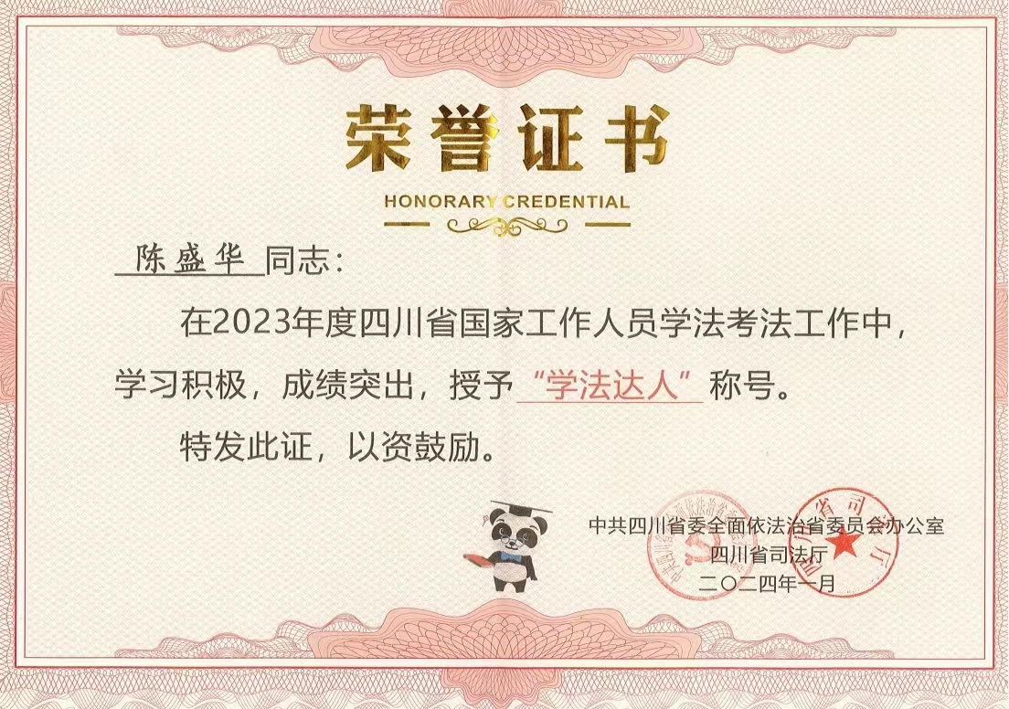 近日,中共四川省委全面依法治省委員會辦公室、四川省司法廳通報2023年度四川省國家工作人員學法考法工作情況,全省114.8萬人參考,評出學法超過1000分且年度考法成績滿分的“學法達人”共1143名,其中建設公司陳盛華同志以位列全省企業(yè)類第3名的成績喜獲殊榮。