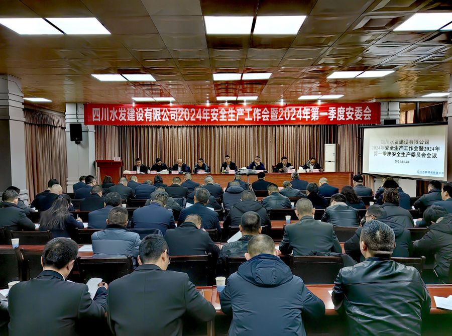 2024年1月28日,建設公司在資陽辦公區召開2024年安全生產工作會暨2024年第一季度安全生產委員會會議,全面總結2023年安全生產工作,安排部署2024年安全生產工作及第一季度工作要點,簽訂2024年安全生產管理目標責任書,并對2023年安全生產先進個人進行表彰。黨委書記、董事長、安委會主任袁斌出席會議并講話,董事、副總經理鄒世界主持會議。