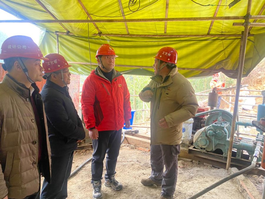 為加快推動引大濟岷工程一線鉆探作業的進度與質量,切實抓好歲末年初安全生產工作,確保春節前各項安全生產措施落細落實,2月8日,設計公司黨委副書記、董事、總經理張宏帶隊赴天全縣引大濟岷工程鉆探現場開展督導檢查工作。