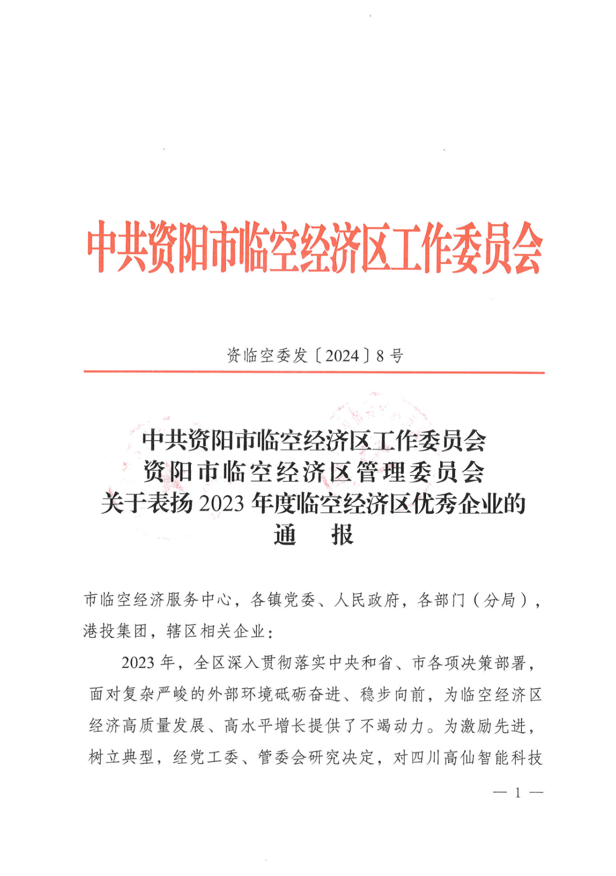 2月26日,建設公司在資陽高新區、資陽臨空經濟區2024年經濟工作會上榮獲“2023年度臨空經濟區優秀企業”稱號并獲得政策獎補資金。
