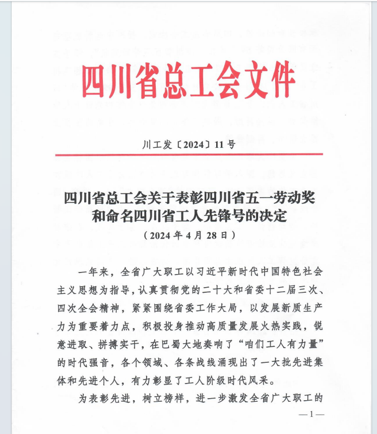 喜報!向家壩公司經(jīng)營發(fā)展部獲得2024年“四川省工人先鋒號”榮譽(yù)稱號