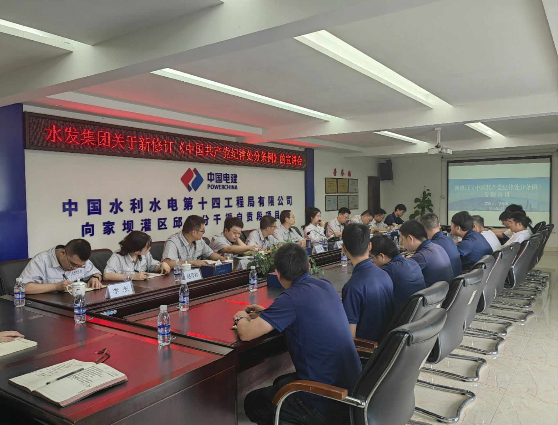 為深入學(xué)習(xí)貫徹新修訂的《中國共產(chǎn)黨紀(jì)律處分條例》(以下簡稱《條例》),推動黨紀(jì)學(xué)習(xí)教育走深走實,增強紀(jì)律規(guī)矩意識,筑牢廉潔思想防線,6月5日,集團紀(jì)檢監(jiān)察部副部長羅超帶領(lǐng)集團黨紀(jì)宣講團成員赴向家壩灌區(qū)公司的向家壩灌區(qū)一期一步北一段中鐵十二局項目部、邱場分干渠自貢段水電十四局項目部和一期二步V標(biāo)水發(fā)建設(shè)3個項目部為參建單位各黨支部宣講新修訂的《條例》。