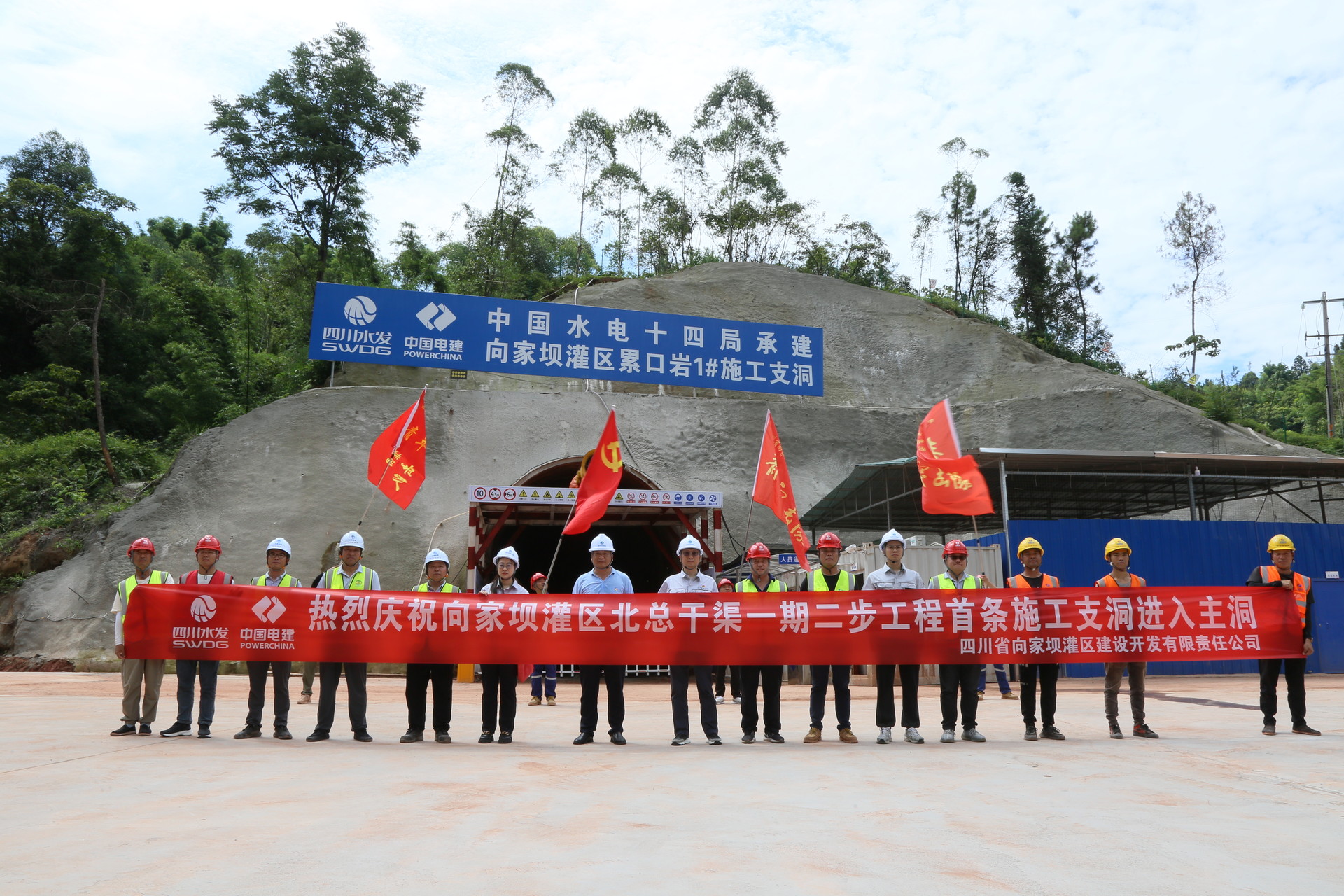 7月12日,隨著挖掘機將隧洞中最后一堆石塊挖開,向家壩灌區北總干渠一期二步工程施工第Ⅲ標段累口巖隧洞1號施工支洞順利貫通,這也標志著一期二步工程首條施工支洞正式貫通。向家壩公司黨委書記、董事長代勇參加貫通活動。