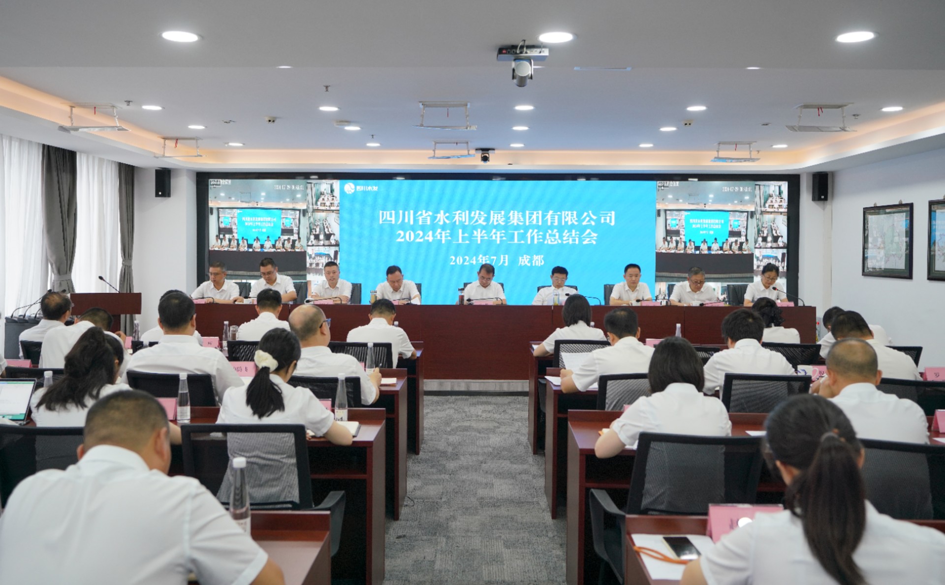 會上,集團相關分管領導通報了集團上半年重大水利工程、產業發展推進情況并安排了下半年工作,集團水務專班、建設公司、亭子口公司、水網科技公司分別就水務市場拓展、施工業務市場拓展、加快國債項目建設、信息化產業市場拓展等領域作了經驗交流發言,并觀看了新時期四川水利高質量發展紀實片《蝶變》,集團各部門、二級企業對上半年工作成效和下半年工作計劃做書面報告。