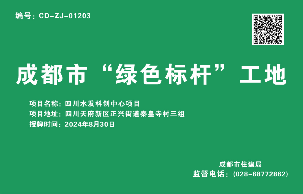 近日,四川水發科創中心項目正式取得由成都市住建局頒發的成都市“綠色標桿”工地稱號,這是該項目獲批成都市2024年度重點項目之后榮獲的又一殊榮。