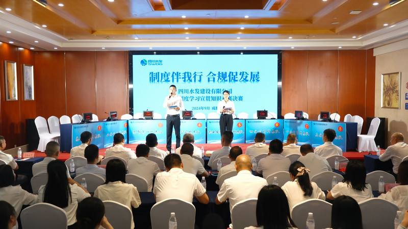 2024年是公司制度宣貫執行年,現代企業的發展離不開制度建設,制度有效性的關鍵在于執行。為賦能干部職工專業水平及合規意識的綜合增長,持續推動公司現代企業治理體系建設,水發集團建設公司工會舉辦“制度伴我行合規促發展”內控制度學習宣貫知識競賽。9月29日,決賽在成都成功舉辦,以良好的精神風貌為新中國75周年華誕獻上最誠摯的祝福。7月啟動知識競賽活動以來,通過激烈緊張的角逐選拔,來自6個分(子)公司及公司總部的8支參賽隊伍共24名參賽選手站上了決賽舞臺。