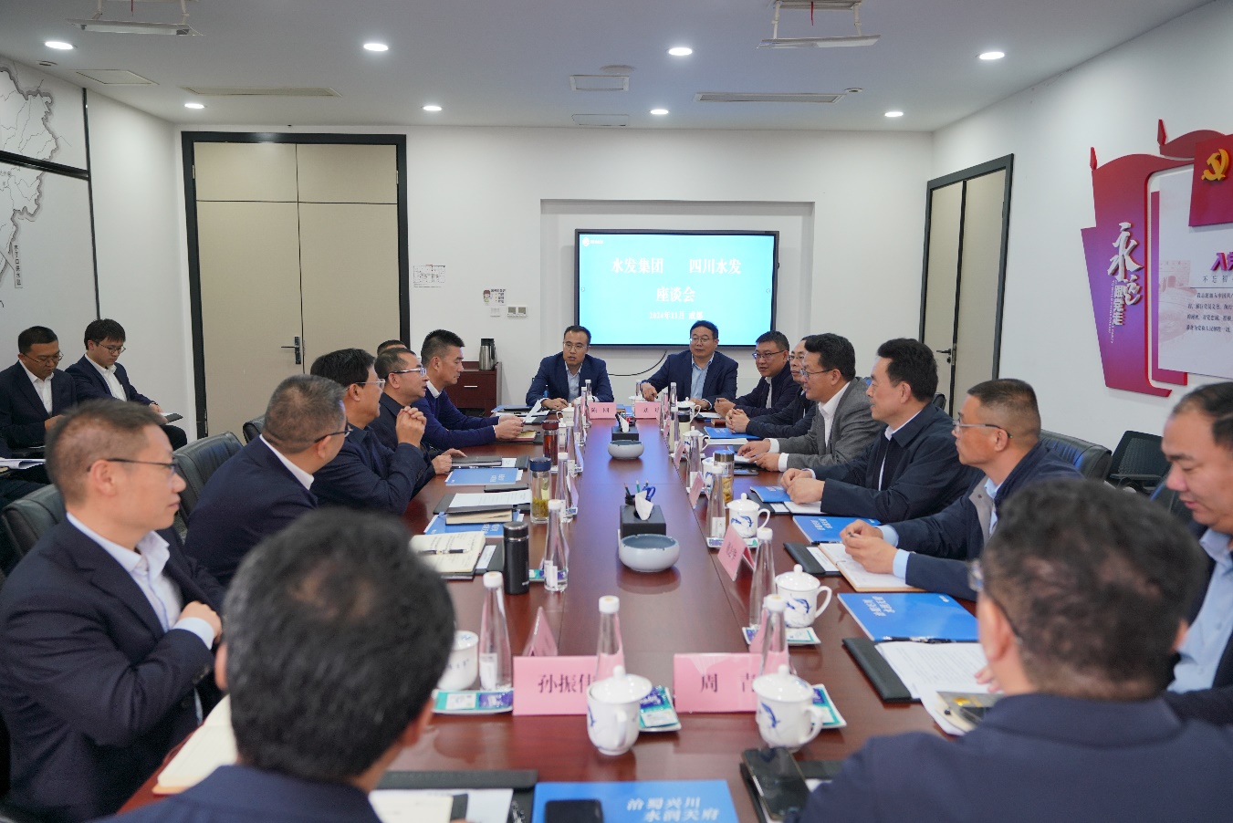王華對安中濤一行的到訪表示歡迎,并結合四川省戰略腹地新定位與水資源條件稟賦介紹了集團重大水利工程建設和產業發展的規劃與愿景。王華指出,山東水發作為山東乃至全國具有重要影響力的大型國有企業,在工程建設與產業發展方面都取得了令人矚目的成就。山東水發與四川水發有著相似的功能定位,承擔著相似的歷史使命,希望雙方能夠加強戰略交流,成就彼此,合作共贏。