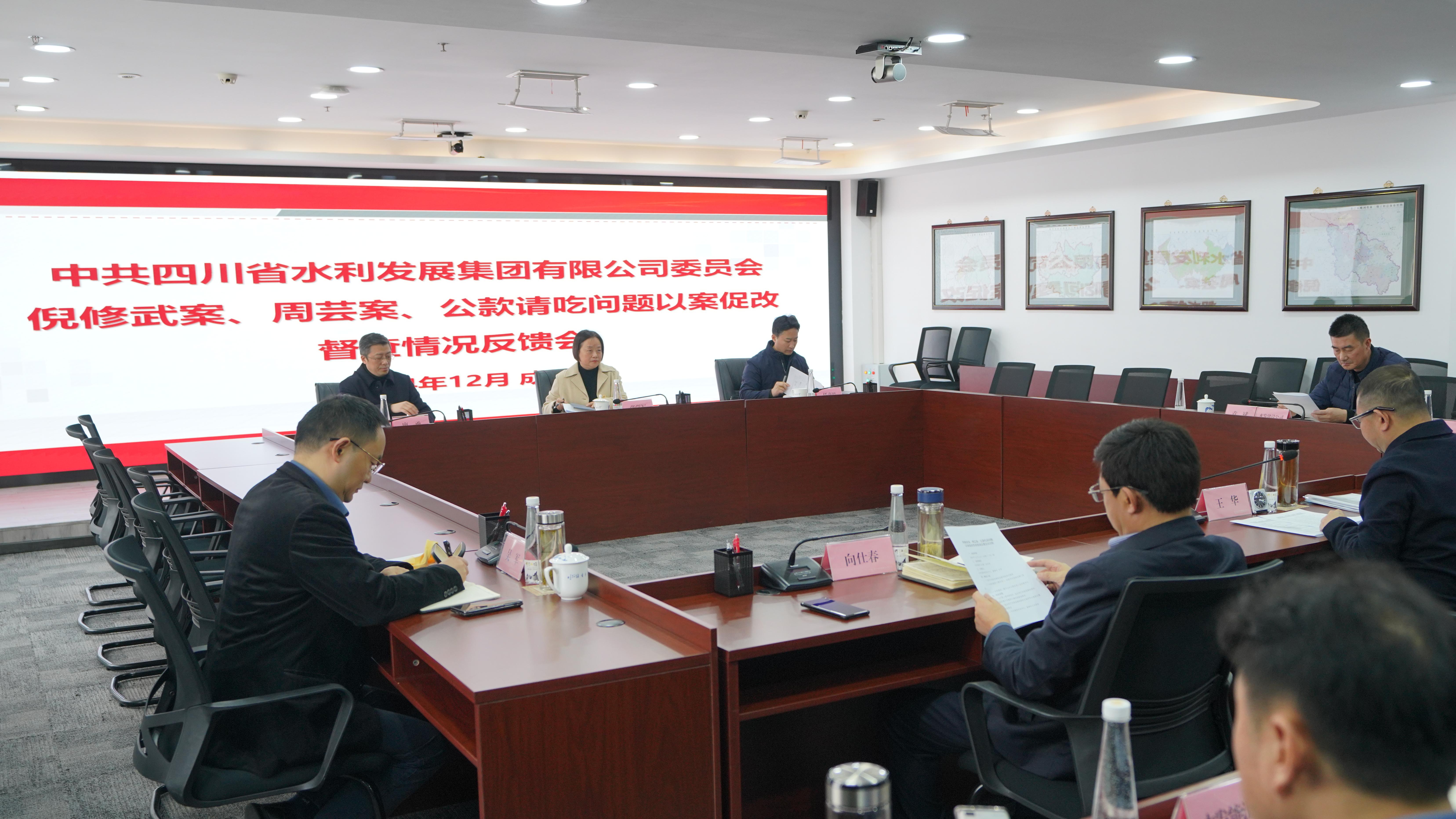 12月4日下午,倪修武案、周蕓案、公款吃請(qǐng)問(wèn)題以案促改督查情況反饋會(huì)在水發(fā)集團(tuán)召開(kāi)。駐水利廳紀(jì)檢監(jiān)察組副組長(zhǎng)張學(xué)軍,廳第二督導(dǎo)組組長(zhǎng)、駐水利廳紀(jì)檢監(jiān)察組副組長(zhǎng)任彥濱,廳第二督導(dǎo)組副組長(zhǎng)、水科院紀(jì)委書(shū)記廖勇出席會(huì)議。水發(fā)集團(tuán)黨委書(shū)記、董事長(zhǎng)王華主持會(huì)議并發(fā)言。
